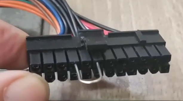이후 아래 이미지 처럼 파워 서플라이의 라인중 메인보드에 꼽히는 24핀 짜리 라인이 있는데 여기서 4번과 6번 라인을 클립 등으로 쇼트시키면 됩니다. 파워 서플라이가 220 볼트 전원에 연결되어 있는 상태라면 팬이 돌기 시작합니다. 만약에 이 부분이 잘 된다면 파워 서플라이는 해당 문제(전원을 눌렀는데 반응이 없는 경우) 와는 무관하다고 확인할 수 있습니다. 왜냐하면, 위에 메인보드에서 가위 등으로 쇼트시켰을 때 파워서플라이 안쪽의 팬이 잠깐이라도 돌아야 하기 때문입니다.