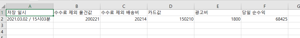 10. 잘 저장되었다고 나올 겁니다. 처음 실행 시에는 같은 폴더에 history.xlsx 파일이 생성되며, 해당 파일이 이미 존재한다면 해당 문서를 열어 아래행에 내용을 추가합니다.