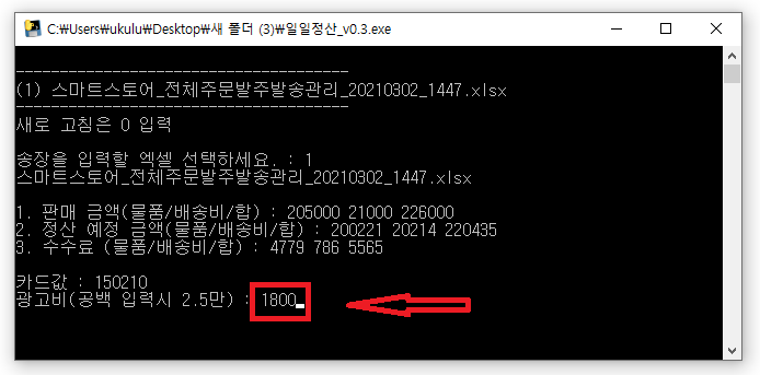 8. 당일 지출했다고 생각되는 광고비를 입력 후 엔터를 눌러주세요.