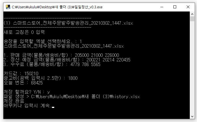 스마트스토어 일정산 순수익 자동계산 프로그램