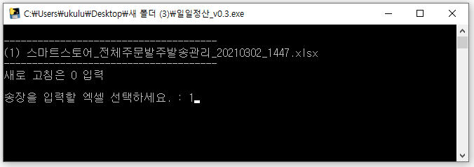 4. '일일정산_v0.3.exe' 실행 하기
