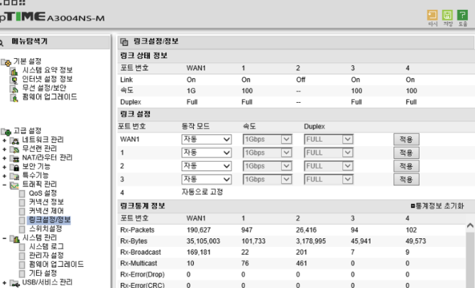 나머지 구멍은 100메가로 연결되어 있죠? 이런 경우 불편은 하지만 사용은 가능합니다.