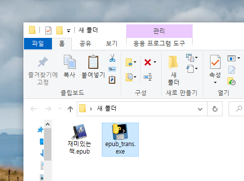 - 해당 폴더에 첨부 파일(zip) 다운로드 및 'epub_trans.exe' 압축해제