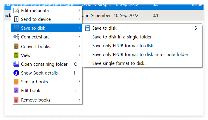 4. 다시, calibre의 리스트에서 오른쪽 마우스 버튼으로 클릭하세요.